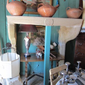 limestone fireplace mantel (fireplace) surround in the style of Louis XVI with