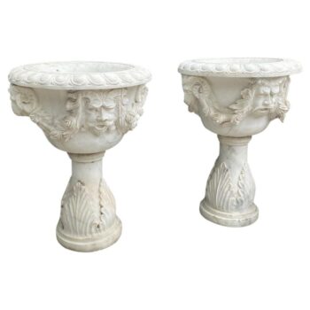 Pair Hand Carved Stone Pillar Finials Decorative Urns Vase