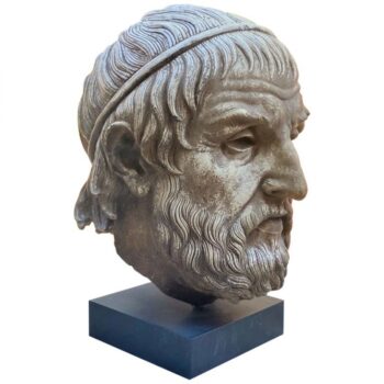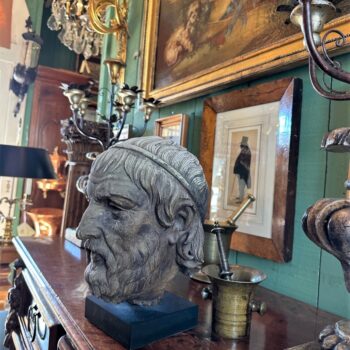 Antique Mounted on Base Sculpture Cast Head Zeus Bust Decorative Bibelot CA LA