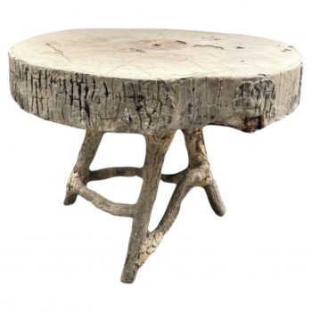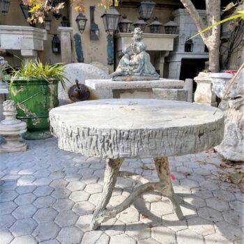 19th C. Vintage Large Faux Bois Garden Tree Table & Hand Crafted Round Top