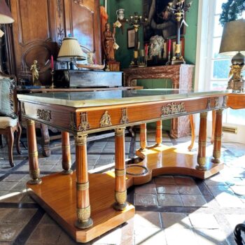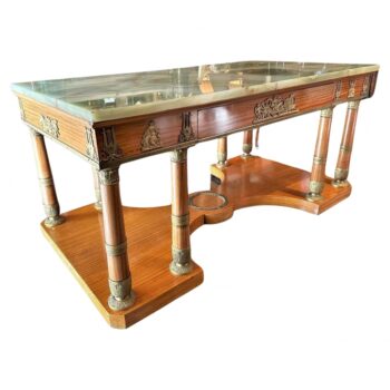 Rare Charles X Office partners Desk Center Table console Wood Onyx Stone Bronze