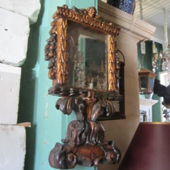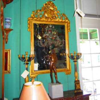 18th C. Antique Gilded Bronze Mirror Glass Desk Console Wall Mount Handcrafted