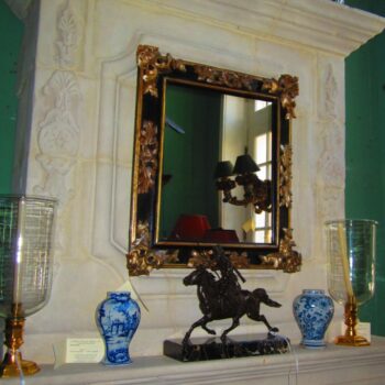 Hand Carved Wood & Stone Gilded Mantle Mirror Glass Decorative Antiques LA CA