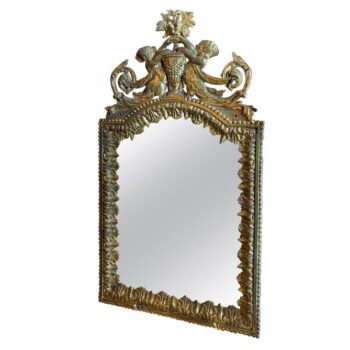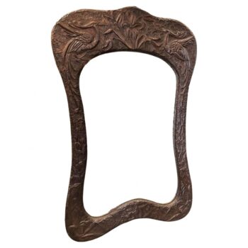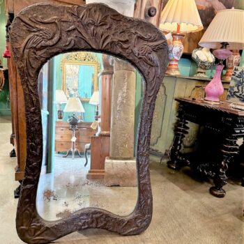 Art Nouveau Wood & Metal Mantle Wall Mirror Glass Embossed Repousse Antique CA