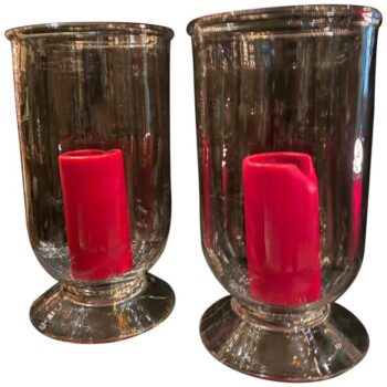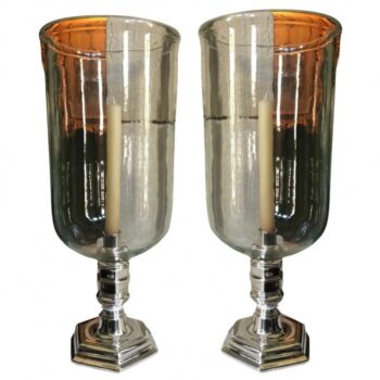 Pair Hand Blown Crystal Hurricane Lantern Table Lamp Candleholder Light Design