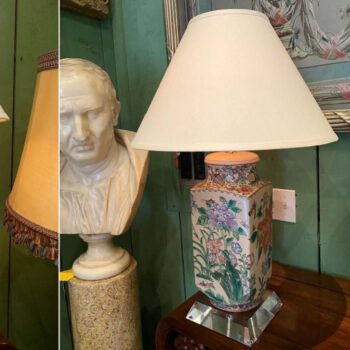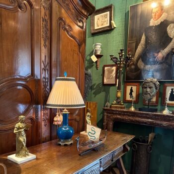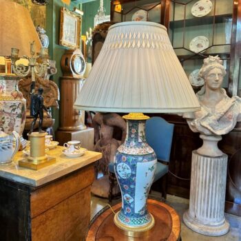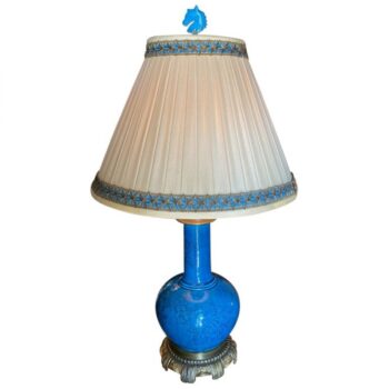 18th C. Table Lamp Ceramic Baluster Chinese blue Vase & Shade Finial Antiques LA