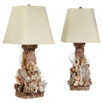Pair beautiful Lamps made of Coral Shell and sea weed