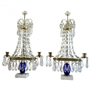 Pair Crystal Cut Glass Light Candleholder Antique Girandoles Swedish LA Dealer