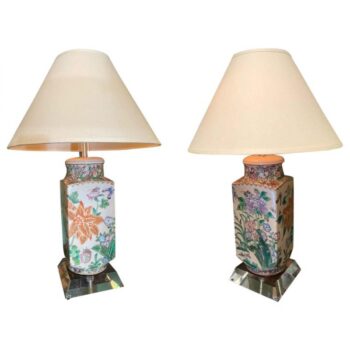 Pair Chinoiseries Oriental Vases on Modern Plexiglas Table lamps Antiques LA CA