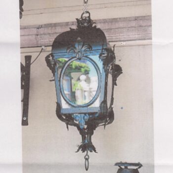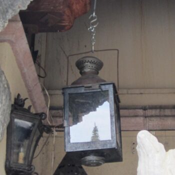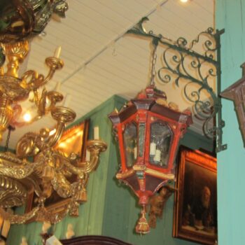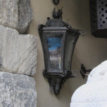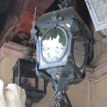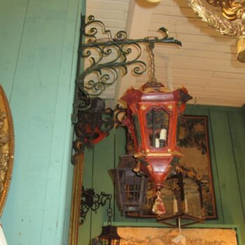 Italian Rococo Regency Style Wrought iron Lantern Sconces and Hurricane Crystal