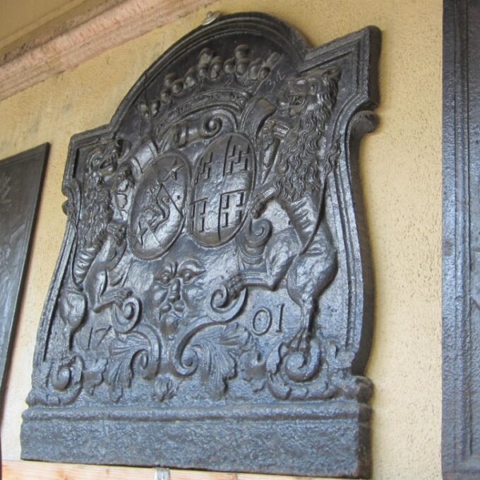 16th Century Armorial Fire Plaque Height: 37 3/4″ Width: 36″ Depth: 1/ 1/4″