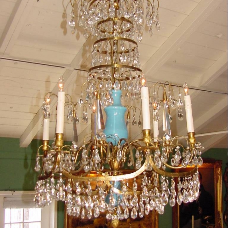 A Fine Early 19th Century Baltic Gilt Bronze and Crystal 8-Light Chandelier