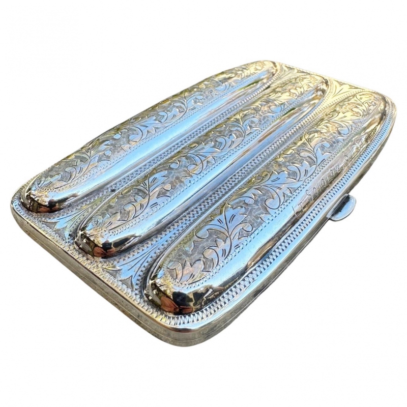 fireplace . A magnificent sterling silver engraved Cigar cigarette case Holder