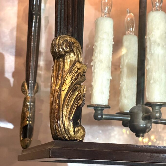 Carved Wood antique Partially Gilt hanging Lantern . Outstanding Carving workmanship