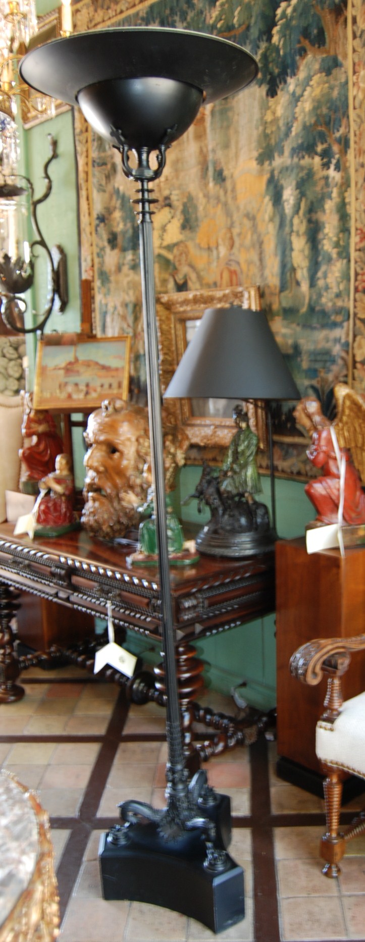 Height: 84″ Base: 17″ 19th C. Neoclassical Side corner Torch Floor Lamp Pompeian