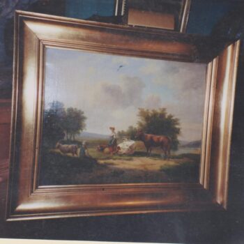 Height 27 1/2″  Width 35 1/2″ and Depth 2″  19th C. Orientalist Painting Pastel Arab and Camel, desert landscape fauna Flora . Beautiful and fine 19th century orientalist Pastel painting of an Arab Man with his camel traveling in the desert looking into the pink glow of the sun. In gilt frame. which depicts a […]