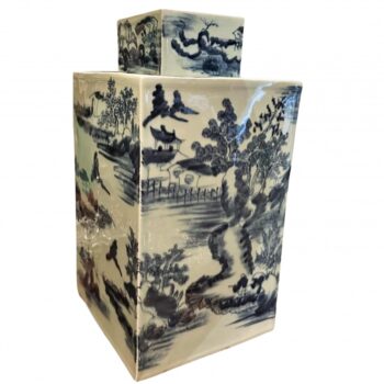 Antique Blue & White Chinese Large Lidded Temple Jar