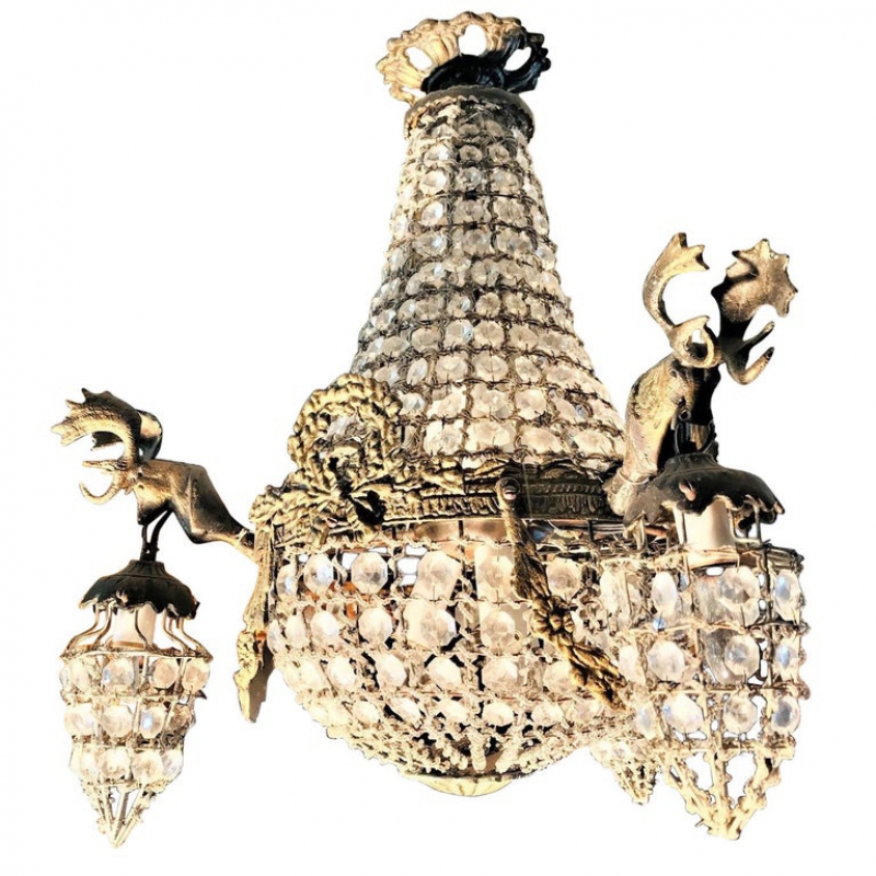 Ceiling Light Pendant . 19th Century Hunting Lodge Crystal Hanging Chandelier