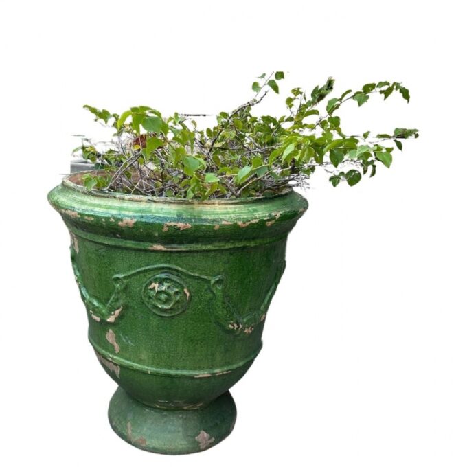 Earthen-ware terracotta Glazed Anduze From Anduze France jar planter in green