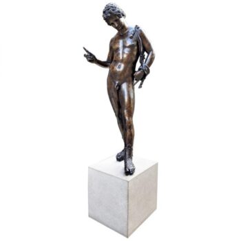 Originally, we had a life-size pair of French painted cast iron models of hounds, titled ‘Deux Chiens Assis’ we only have one available. Cast after the models by HENRI-ALFRED-MARIE JACQUEMART, 20th century. Some beautiful casts were done over the years, such as a cast by BARBEZAT ET CIE. VAL D’OSNE that was sold for GBP 51, 650 and a cast by A.DURENNE was sold for GBP 43,750.