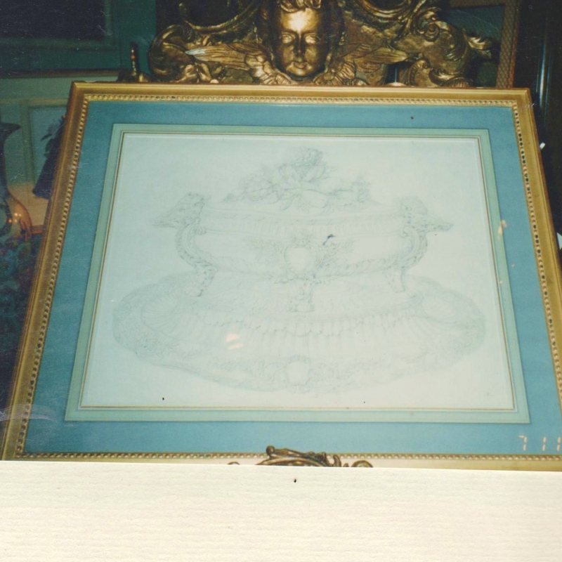 Design Of A Boar’s Head Tureen  Early 19th Century  Workshop Of : Odiot (French)  Pen and Ink on Paper  Bears Collector’s Stamp