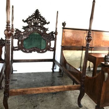 Height: 63 ½” Depth: 77 ½ “  and width : 44”   (full size) and Twin Extra long Fine Sculpted Colonial Portuguese 17th C. Jacaranda Bed Torsade Posts & finials . Very Rare Hand Carved and finished Colonial Portuguese 17th C. Jacaranda comparable to (full size) to Twin Extra long Bed detailed with cartouche. This bed is […]