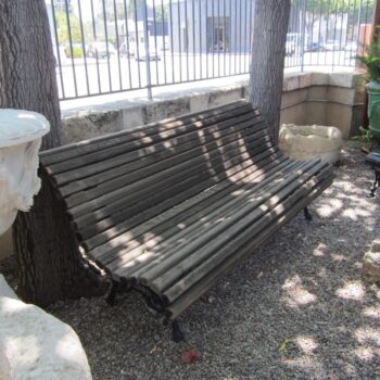on a patio by the pool , this elegant bench will add a touch of the old world