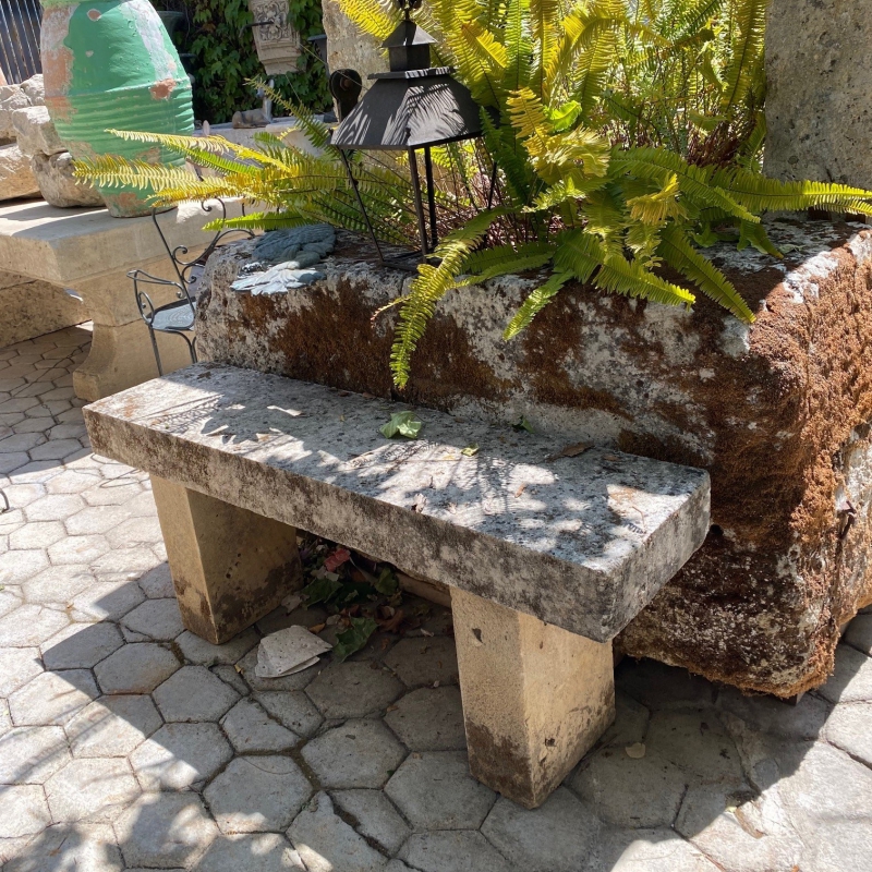Century Hand Carved Large Stone garden bench 4 ¾” thick Stone top Slab . This beautiful