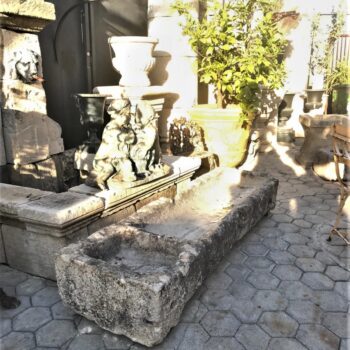 L 77 inches   H 12 inches   Depth 26 inches   SOLD Hand Carved Stone Trough Fountain Basin Farm Sink Planter Firepit idea Rustic CA. Exquisite Very Long 18th century water fountain basin of hand carved stone . This trough could be installed with simple bronze spouts or a carved stone fountain head , we have […]