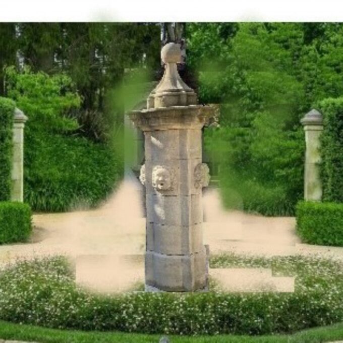 center pedestal column base with a ball finial mounted on top, 4 sided fountain