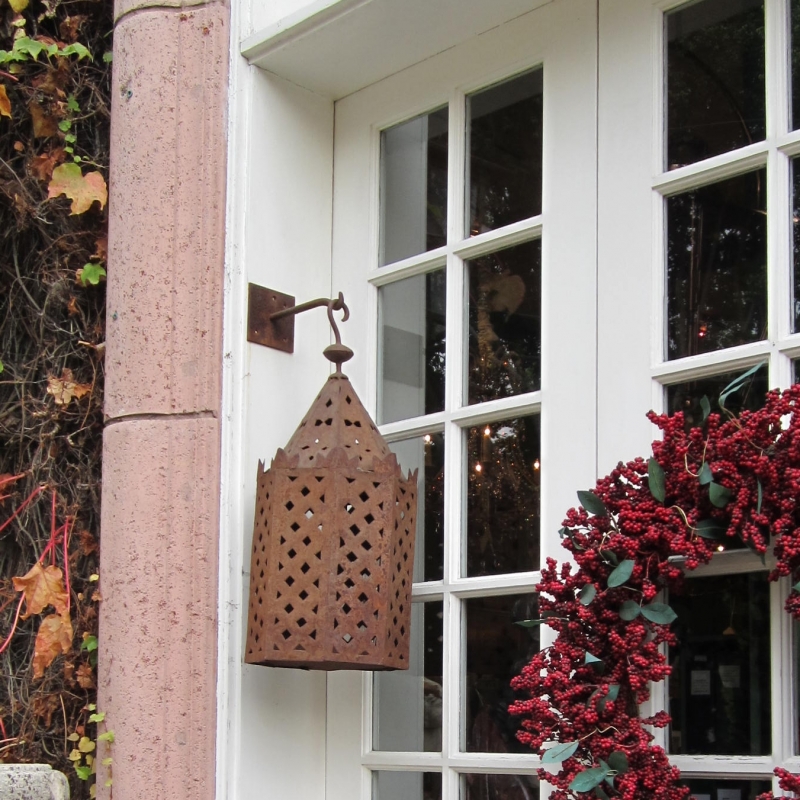 19th C. Large Antique Hand Carved Wood Lantern Hanging Ceiling Light Pendant LA