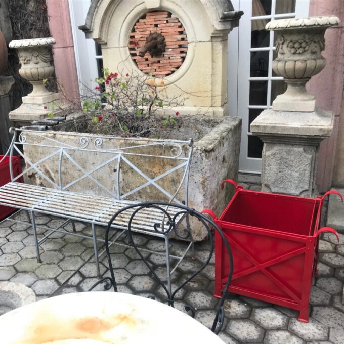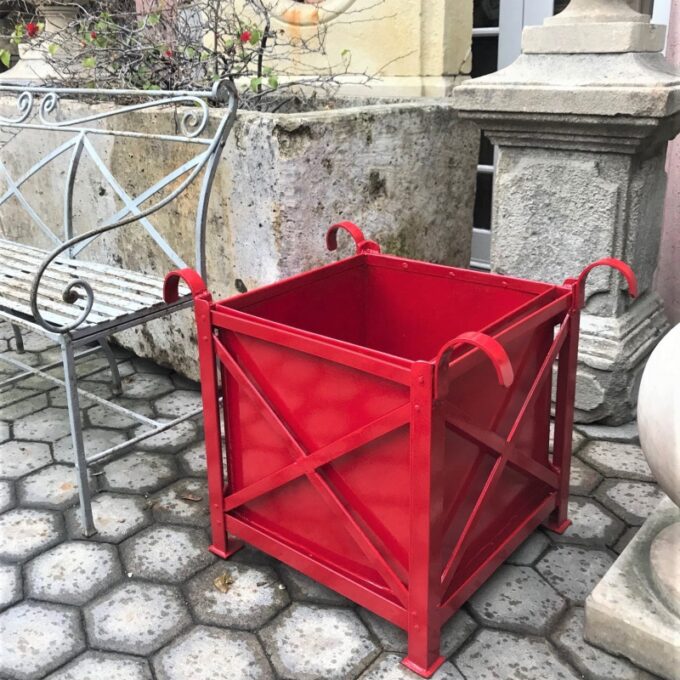 Pair Of Red Painted Orangerie Box Jardinieres.