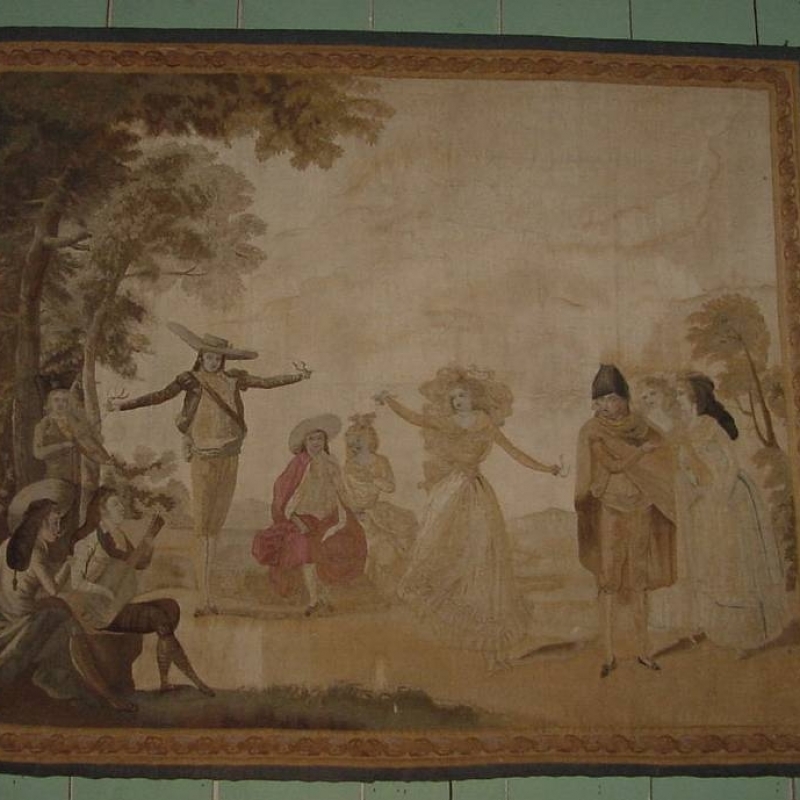 Spanish Silk & Wool Tapestry In The Manner Of Goya