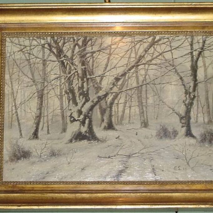 Winter Scene Signed Oil on Canvas 19th Century By Christian Alexander Scmidt Height: 13″ Width: 17″