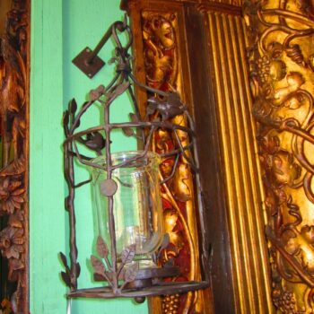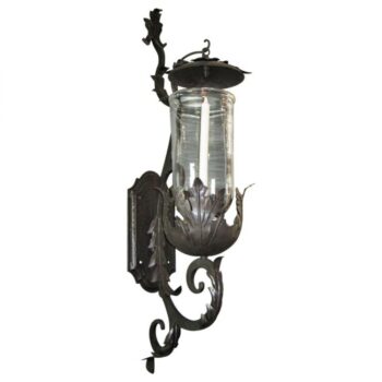 Italian Rococo Regency Style Wrought iron Lantern Sconces and Hurricane Crystal