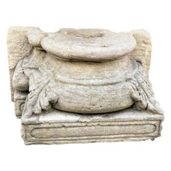17th Century French Limestone Chapiteau Hand Carved Stone Column Base pedestal Sculpture Doorstop Decorative Element LA